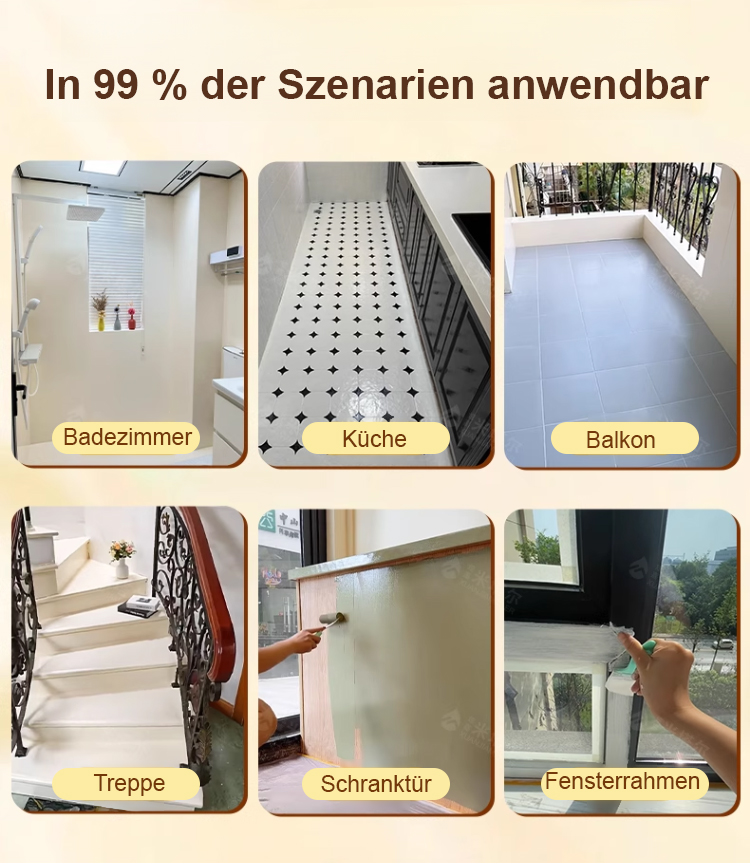 Einfach Deckel aufmachen – sofort streichen! Zwei Stunden nach dem Auftragen vollständig trocken! Nicht nur abriebfest, sondern auch rutschfest, und der Boden sieht nach Streichen wie Marmorfliesen aus! Bei Problemen innerhalb von 10 Jahren übernehmen wir alle Ihre Schäden! Sonderangebot endet in nur 1 Stunde – beeilen Sie sich!